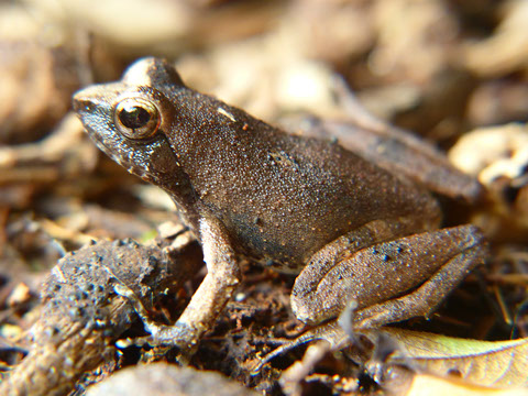 P. auritus, Golden Puddle Frog, is a medium to large sized ground-dwelling amphibian that inhabits primary, secondary and riparian rainforest and is found at elevations up to 900 m in Cameroon. Ectotherms, like frogs, are increasingly threatened by recent and predicted declines associated with climate change. African amphibians in particular will be disproportionally negatively affected. Direct and latent thermal effects associated with the amphibian incubation may directly affect many life history traits, such as the timing of reproduction, hatching success, hatchling phenotype, growth, survival, immune response and reproductive success.