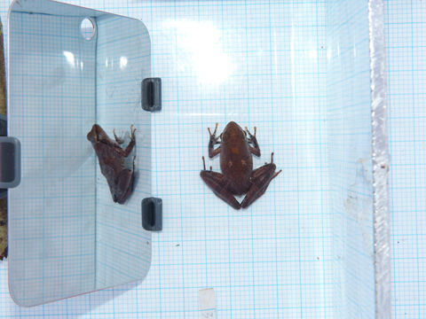 P. auritus, Golden Puddle Frog, is a medium to large sized ground-dwelling amphibian that inhabits primary, secondary and riparian rainforest and is found at elevations up to 900 m in Cameroon. Ectotherms, like frogs, are increasingly threatened by recent and predicted declines associated with climate change. African amphibians in particular will be disproportionally negatively affected. Direct and latent thermal effects associated with the amphibian incubation may directly affect many life history traits, such as the timing of reproduction, hatching success, hatchling phenotype, growth, survival, immune response and reproductive success.